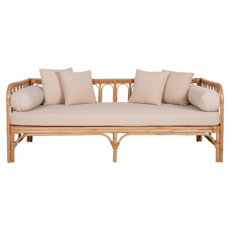 ЛЕГЛО-ДИВАН LIGNANO HM9660 РАТАН В ЕСТЕСТВЕНИ-БЕЖОВИ ВЪЗГЛАВНИЦИ 200x100x75Hcm.