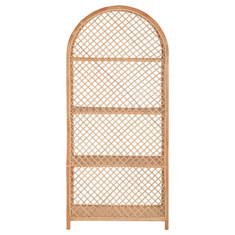 Библиотеката HM9552 е предложение за вашия офис или навсякъде другаде, където искате да поставите библиотека в бохо стил. Разполага с 4 рафта, които са монтирани върху красива рамка с "мрежест" гръб и дъговиден плот. Цветът на конструкцията е ЕСТЕСТВЕНИЯТ цвят на РАТАНА, който е строителният материал на цялата библиотека.
