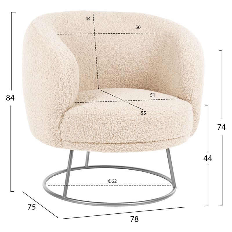 КРЕСЛО ARIEN HM8403.23 МАТЕРИАЛ ОТ БУКЛЕ В БЯЛО-СРЕБРИСТА МЕТАЛНА ОСНОВА 78x75x84Hcm.