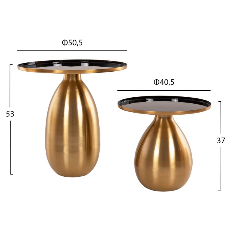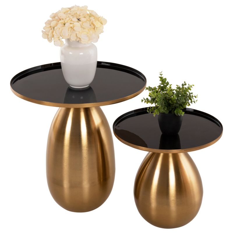 Комплектът помощни маси DEANNA от 2 е едно от новите попълнения в нашата гама. Това са 2 кръгли маси с цилиндрична основа, изработени от метал. Цветът им е златист, а повърхността им е черна. Изключителната характеристика на тези маси са лъскавите повърхности, които придават усещане за чистота и лукс на вашия хол. Идеален както за дома, така и за бизнес помещения.