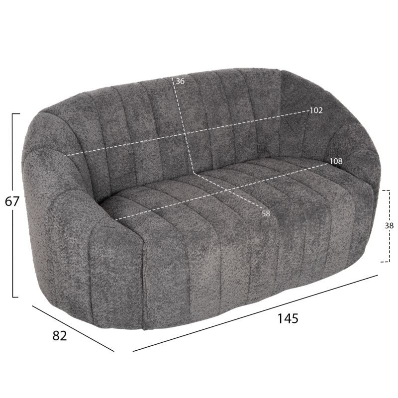 ДИВАН 2-МЕСТЕН MOBY HM9595.01 СИВ ПЛАТ БУКЛЕ 145x82x67Hсм.