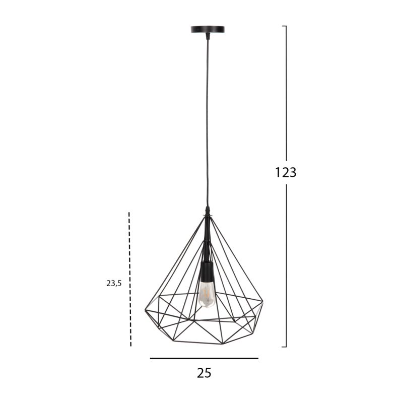Оставете светлината да се разпространи в пространството с оригинален и елегантен пендел, завършващ вашата декорация. Пирамидалната форма с ЧЕРНИ метални пръти е олицетворение на модерния дизайн.