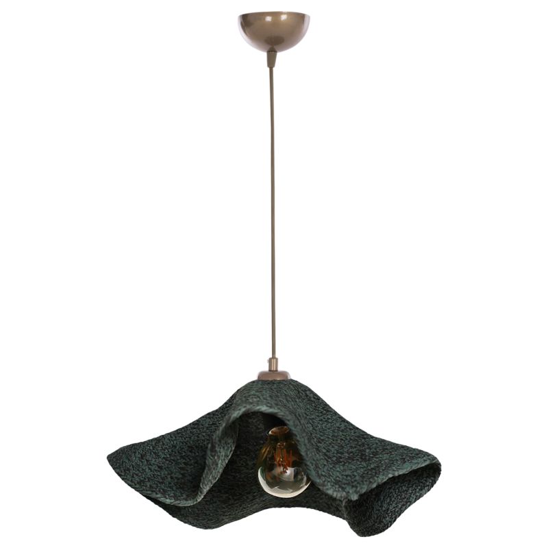 HM7649.03-Таванна лампа -----Оставете светлината да се разпространи в пространството с оригинална и елегантна едносветлинна лампа, която ще завърши вашата декорация. Плафониер в ЗЕЛЕН цвят със ЗЛАТЕН кабел за окачване. „Шапката“ е под формата на сламена лятна шапка, която разсейва светлината надолу и придава безгрижно усещане на пространството.