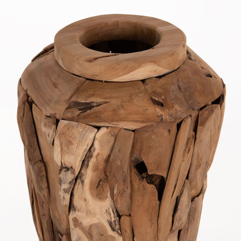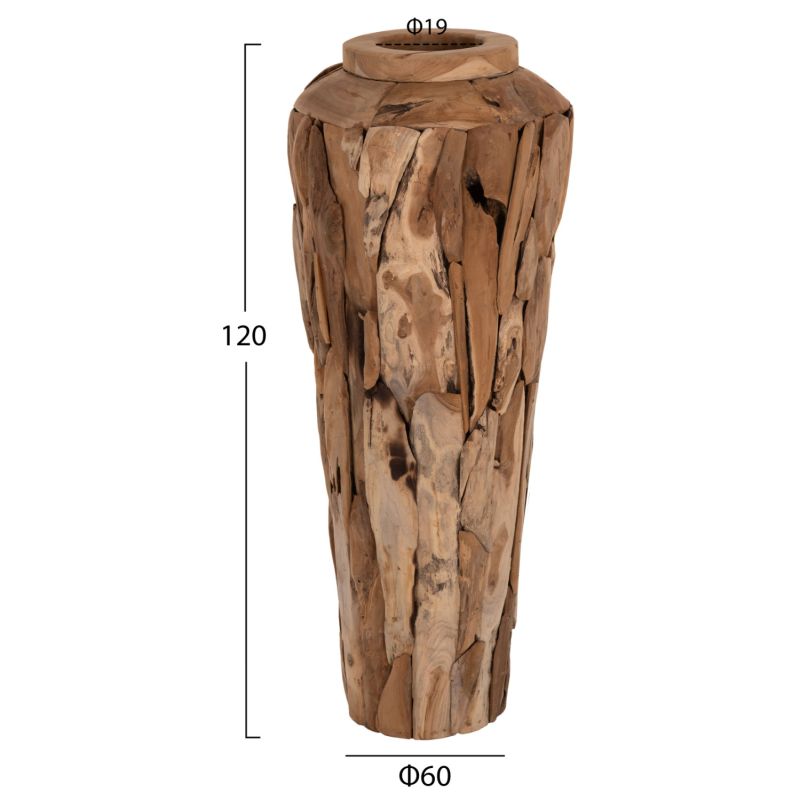 ДЕКОРАТИВНА ПОДОВА ВАЗА ZENIA ΗΜ7921 РЕЦИКЛИРАНИ ПАРЧЕТА ТИКОВО ДЪРВО В ЕСТЕСТВЕН ЦВЯТ Φ60x120Hcm.