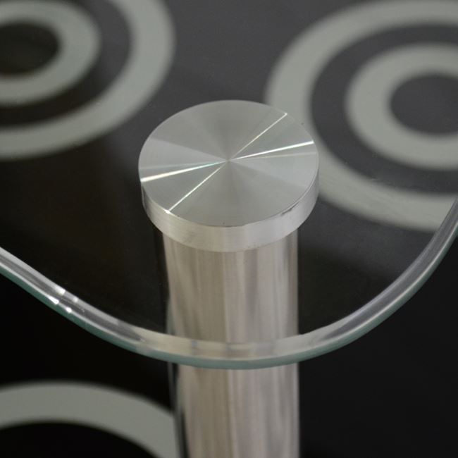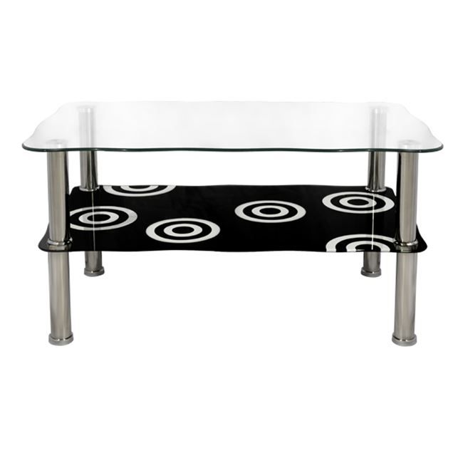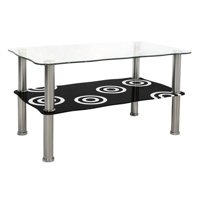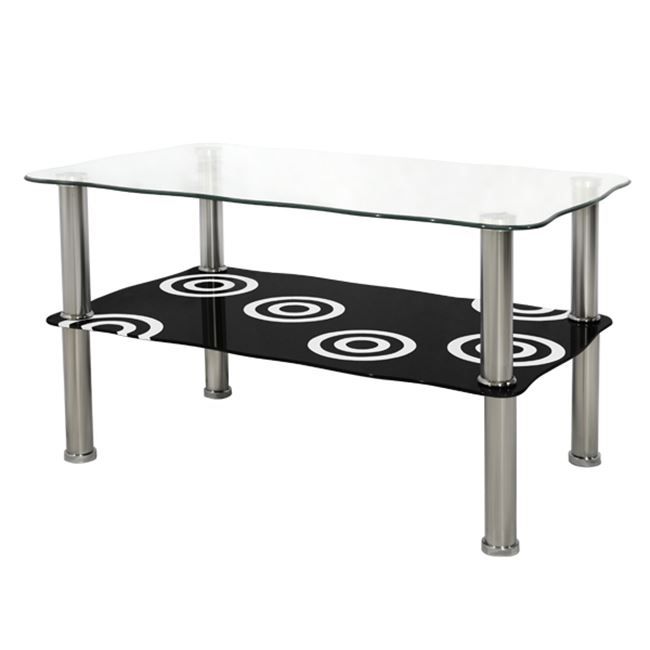 ΗM0087 СТЪКЛЕНА ХОЛНА МАСА-----Открийте модерната холна маса GRABES. Има 2 стъклени повърхности и хромирани метални крака. Горната повърхност е прозрачна, а долната е черна с красиви кръгли шарки. Стъклото в комбинация с хромираните крака придават усещането за чистота и простота на пространството.
