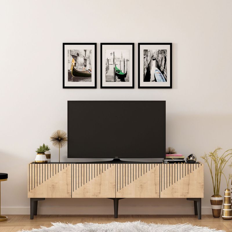 МЕБЕЛИ ЗА ТВ МЕЛАМИН ЕСТЕСТВЕН ЦВЯТ И ВИД НА ЧЕРЕН МРАМОР ПЛОТ 154x37x45Hcm.HM9435.01