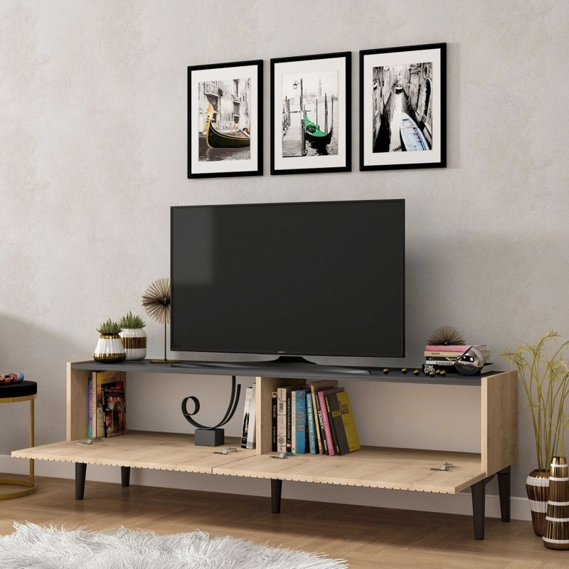 Тази мебел за телевизор е красива и практична. Подходящ е за повечето всекидневни и може да се комбинира с много стилове на декорация благодарение на двуцветните си цветове. Идеално предложение за вашия хол с цена, която няма да ви позволи да търсите другаде!