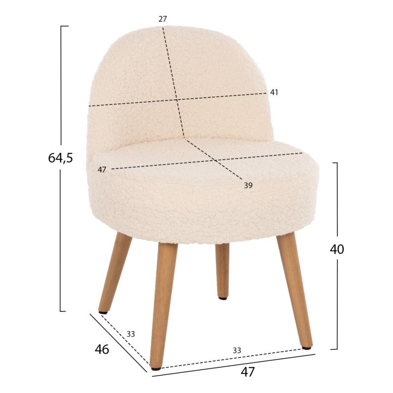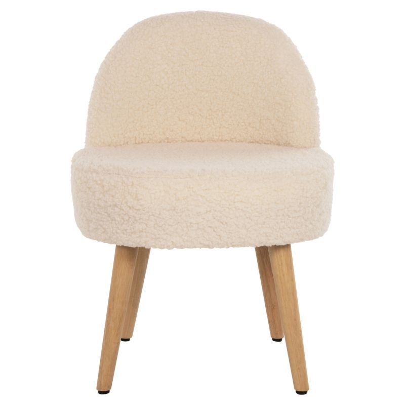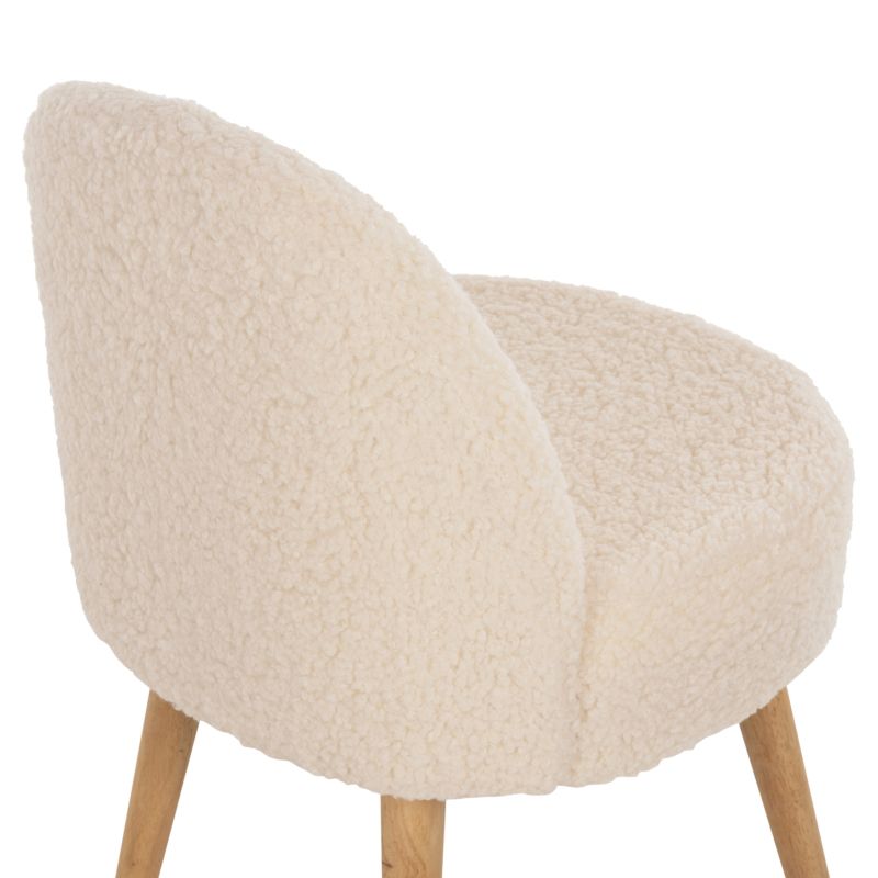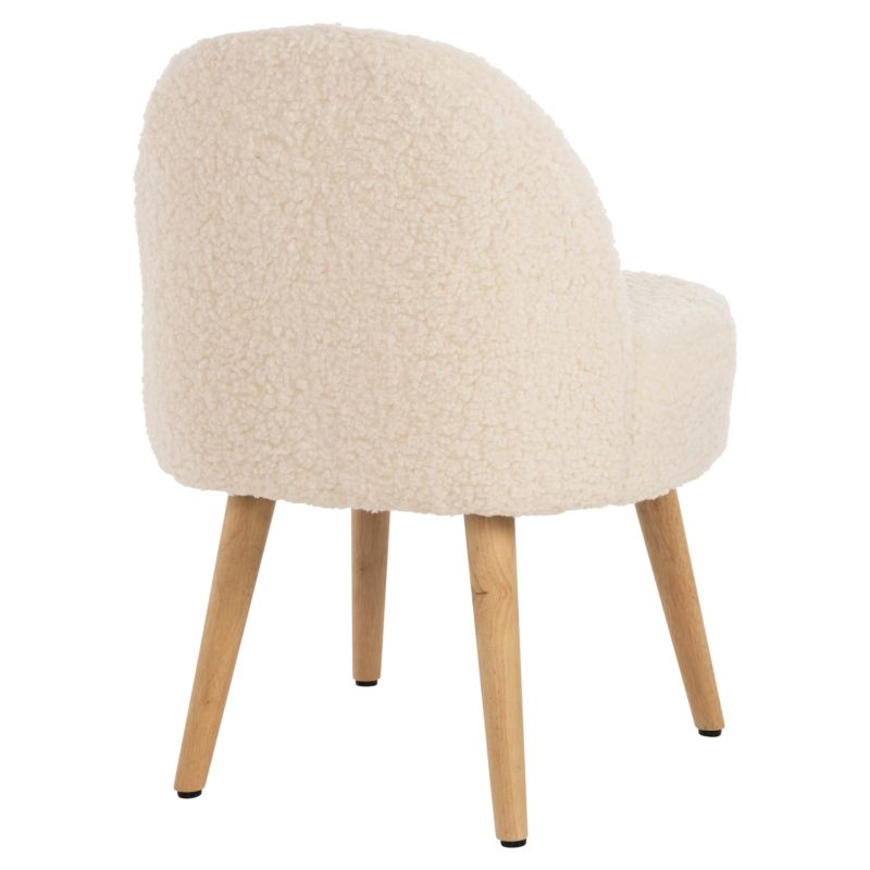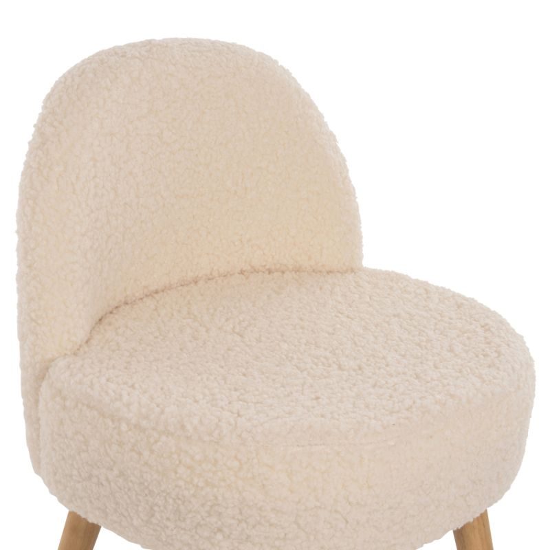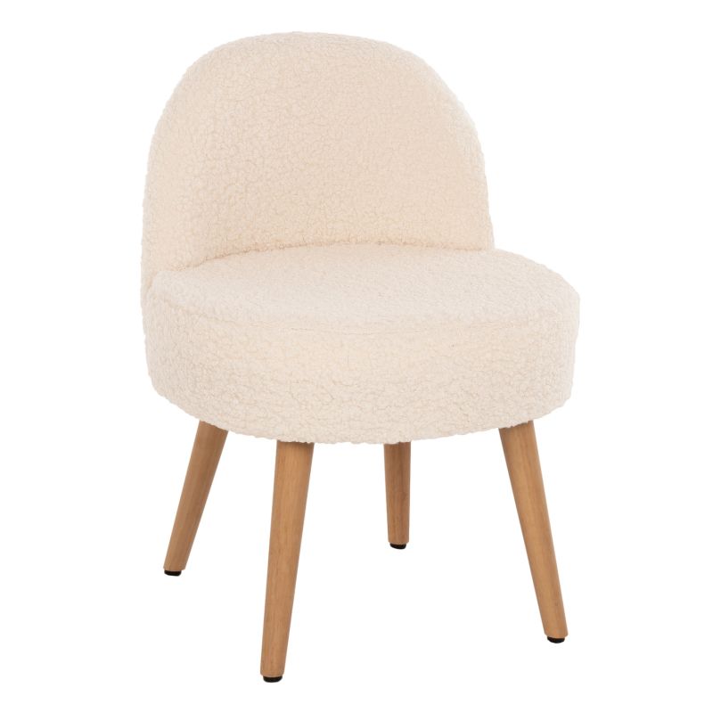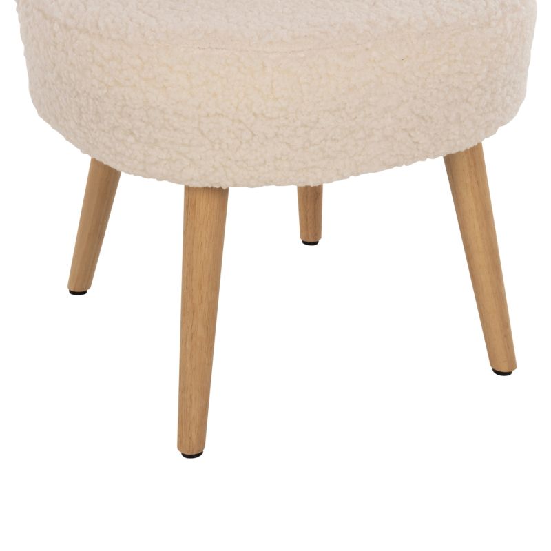 ТАБУРЕТКА YASMINE HM8395.23 НИСКА ОБЛЕГАЛКА- МАТЕРИЯ БУКЛЕ В БЯЛ ЦВЯТ-ДЪРВЕНИ КРАКА 47x46x64,5Hcm.