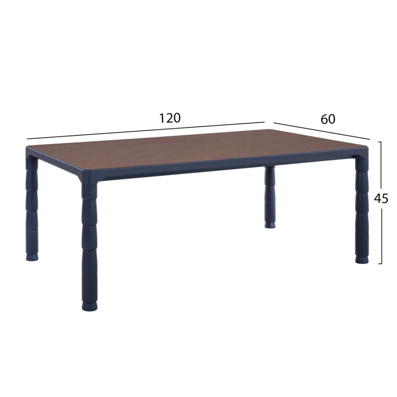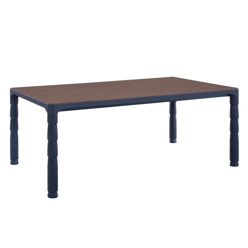 Професионална холна маса, изработена от висококачествен меламин в цвят орех и тъмно синя алуминиева основа.