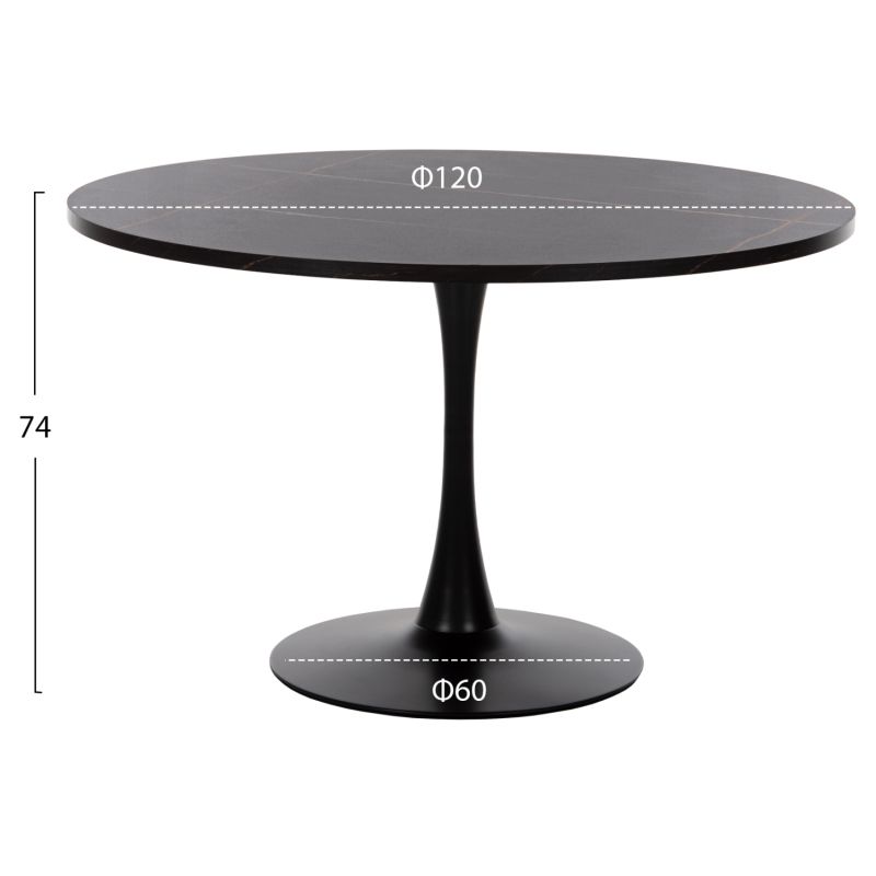 КРЪГЛА ТРАПЕЗНА МАСА ROLLO HM9422.02 МЕЛАМИН В ЧЕРЕН МРАМОР МЕТАЛЕН КРАК Φ120x74Hcm.