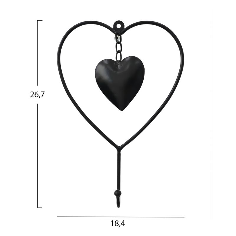 ДЕКОР ЗА СТЕНА HM7563 ЧЕРНО МЕТАЛНО СЪРЦЕ С КУКИЧКА 18.4x4.4x26.7см.