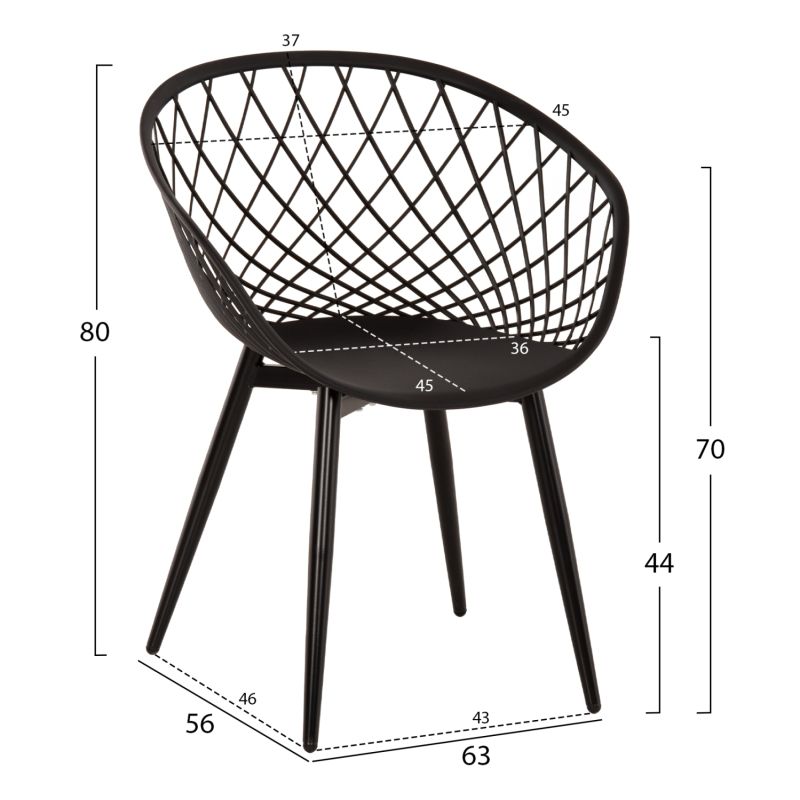 КРЕСЛО ARIADNE HM8001.22 ЧЕРЕН ПОЛИПРОПИЛЕН- ЧЕРНИ МЕТАЛНИ КРАКА 63x56x80Hcm.