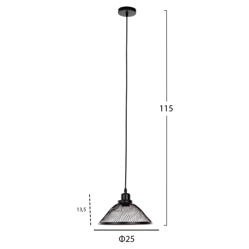 Осветително тяло за таван HM4102 ЧЕРНА МЕТАЛНА МРЕЖЕСТА КАПАЧКА Φ25x115Hcm.