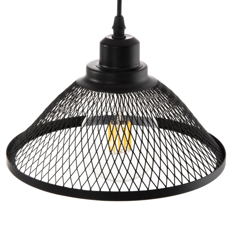 HΜ4102--- Запознайте се с новата, оригинална и елегантна висяща лампа за таван в нашата гама и завършете своята декорация. ЧЕРНАТА метална мрежеста капачка не пречи на светлината да достигне всеки ъгъл, като по този начин прави тази висулка олицетворение на модерния дизайн в таванните лампи.