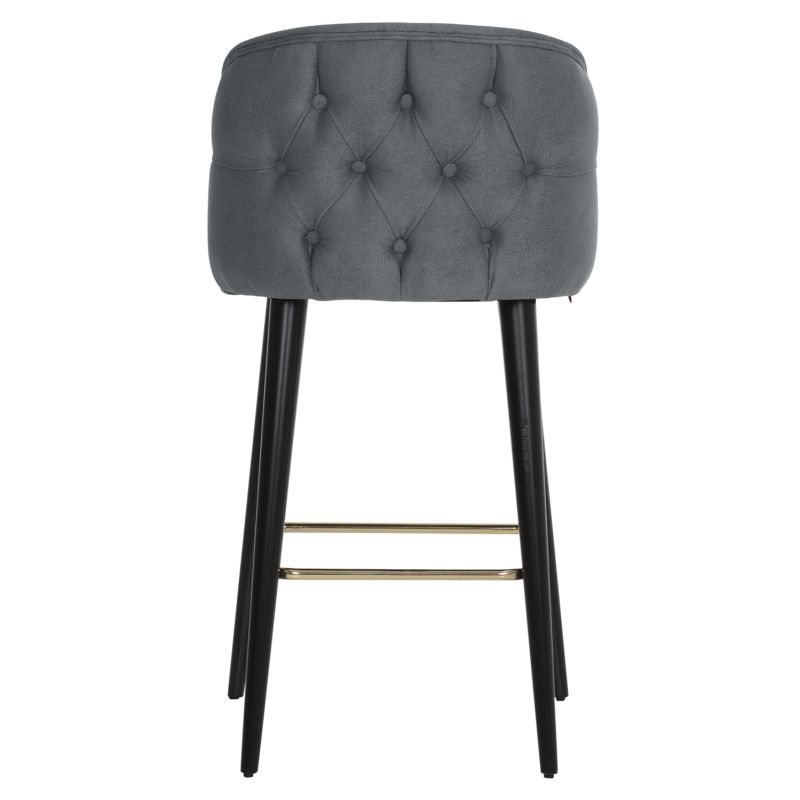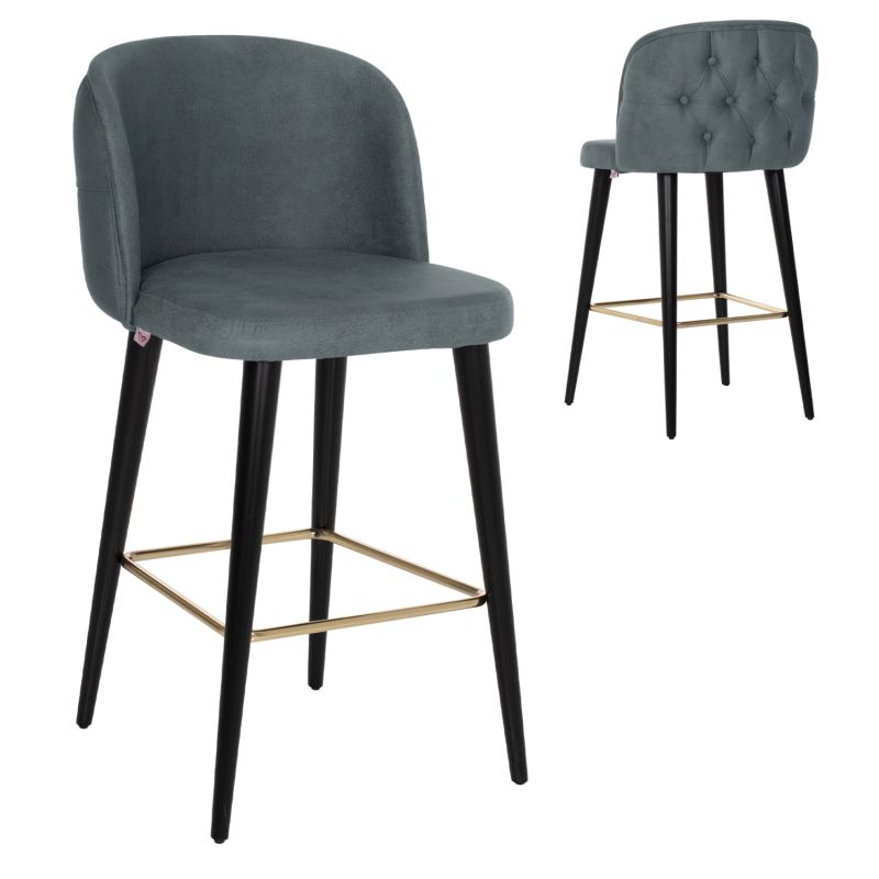 Професионален бар стол "MARCELLO" в СИВ цвят с черни дървени крака. Краката са съединени в средата с метална правоъгълна шина в златист цвят. "MARCELLO" е семпъл, качествен и елегантен на външен вид и определено грабва окото със своята материя тип НАБУК. Висок е с къс гръб. Задната част на облегалката на табуретката е капитонирана, което засилва нейния специален характер.