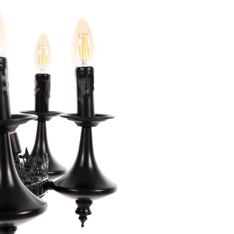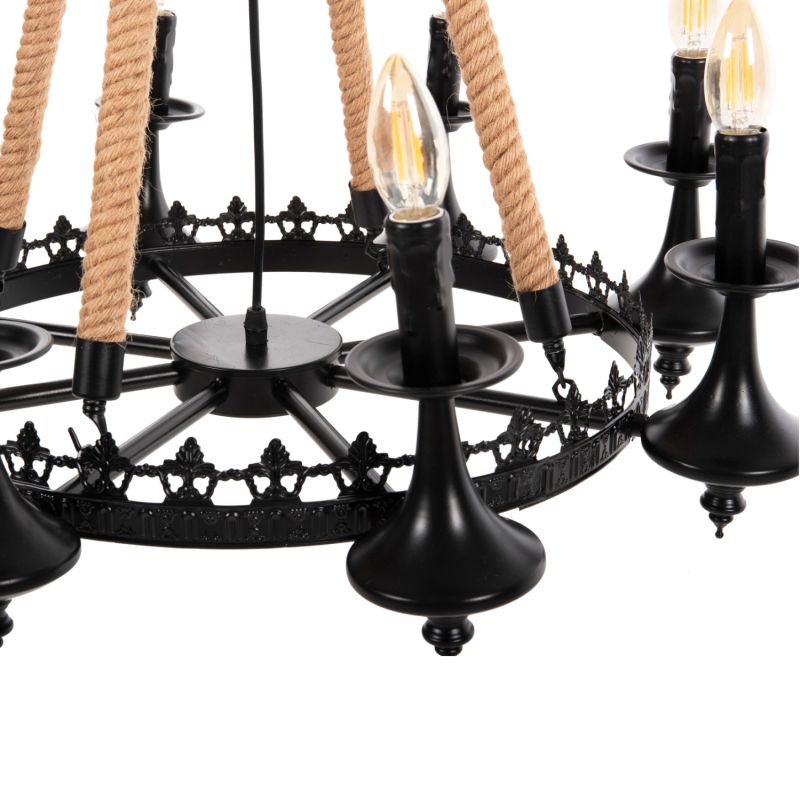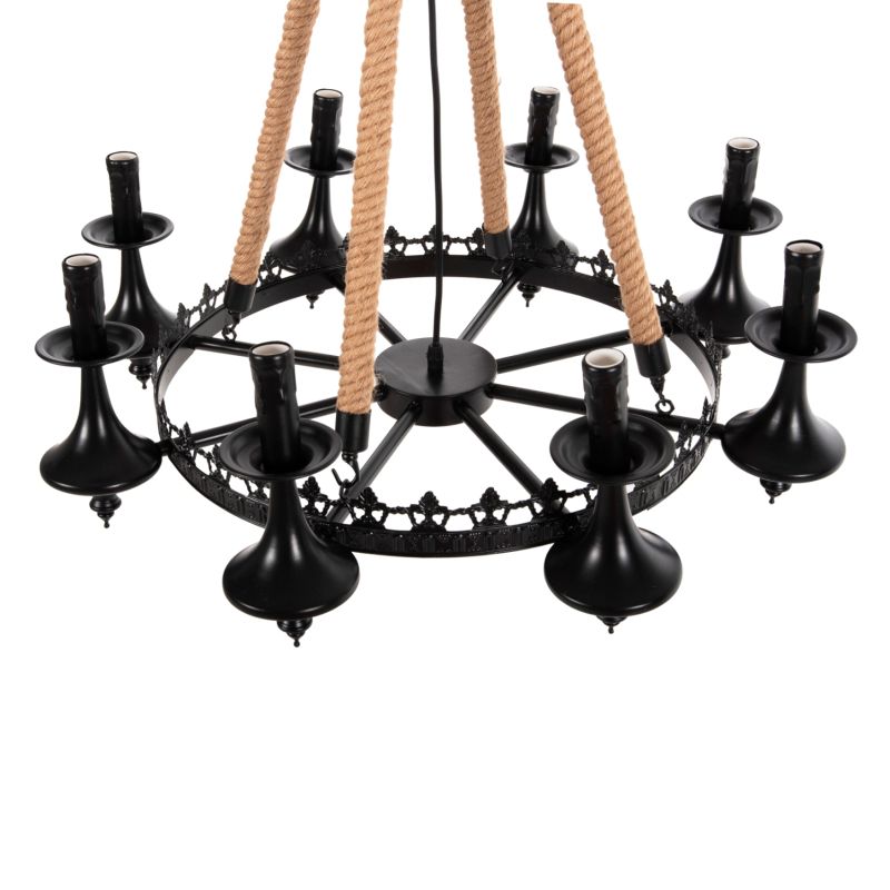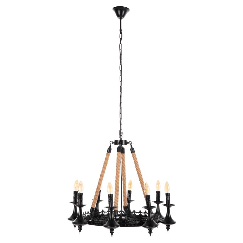 Многосветлият HM4169 е друго впечатляващо допълнение към нашата гама. Неговата черна метална рамка е кръгла и виси на верига от тавана. 8-те светлини под формата на свещници са монтирани върху кръглата рамка, а изображението се допълва от въжетата, които придават на осветителното тяло усещането за полилей. Тази многофункционална лампа ще освети големи пространства с много светлина и ще впечатли с красивия си дизайн.