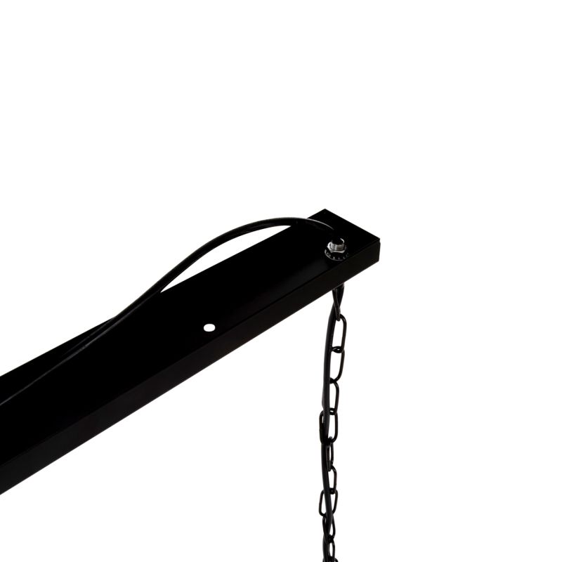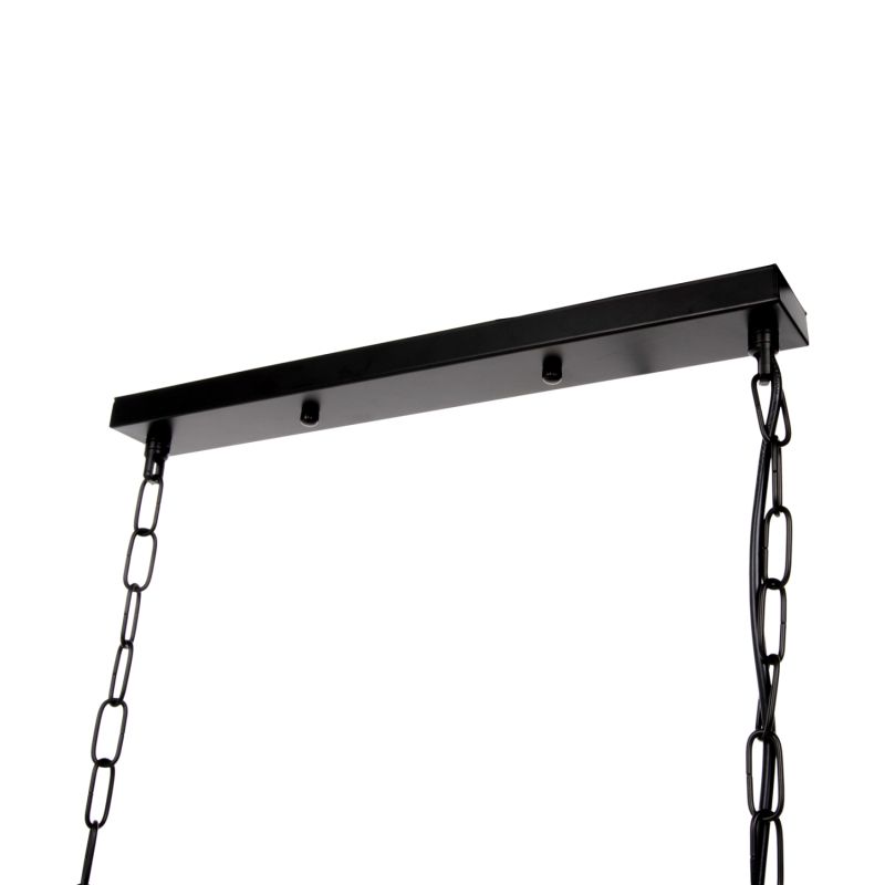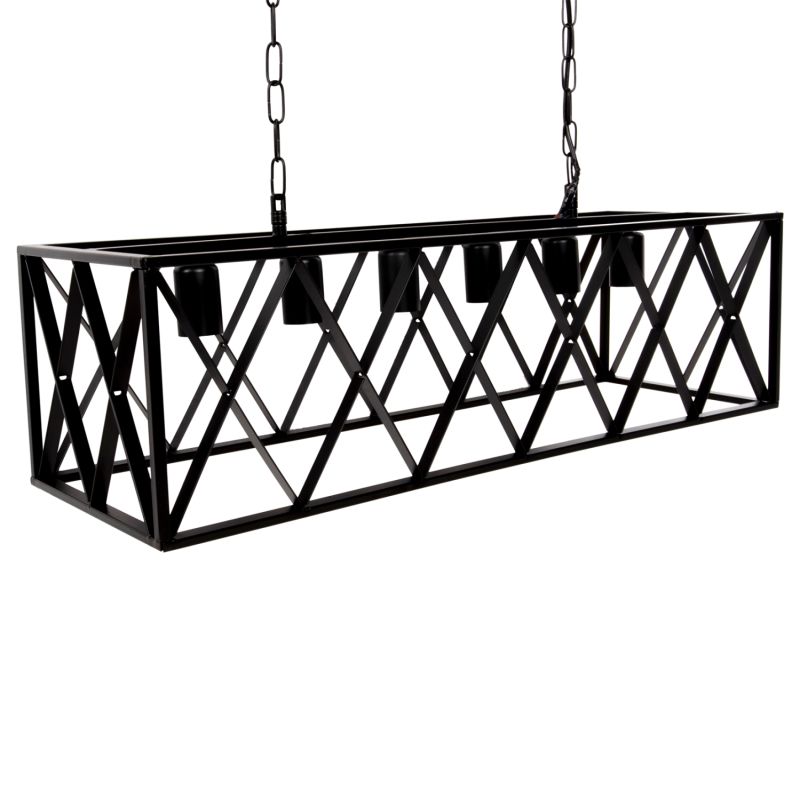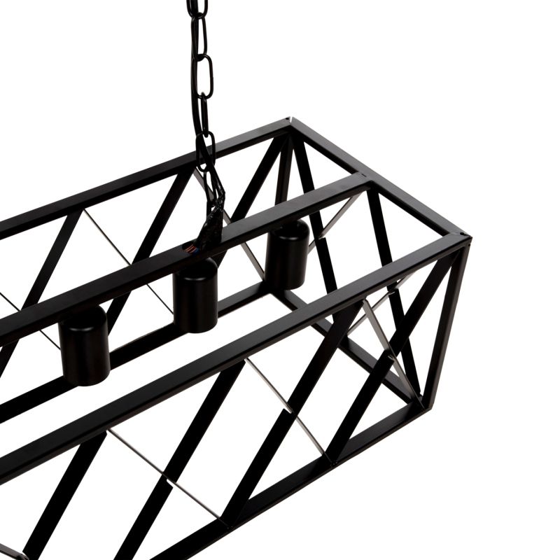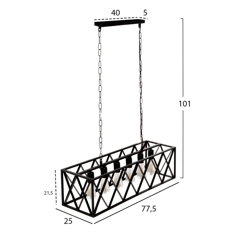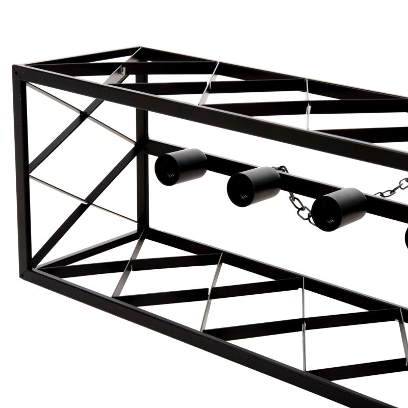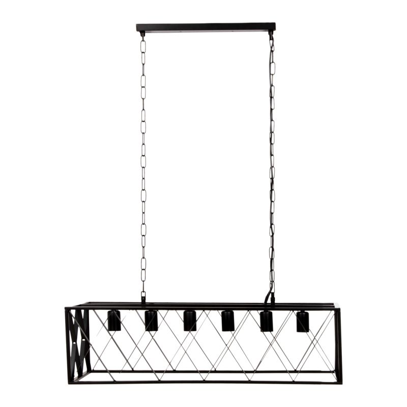 HΜ4128--- Открийте новите лампи в нашата гама и завършете своята декорация. Това е лампа с 6 крушки, която виси на вериги от основата на тавана. Правоъгълната метална „клетка” в ЧЕРЕН цвят позволява светлината да достигне до всеки ъгъл на помещението и е олицетворение на модерния дизайн при плафониери.