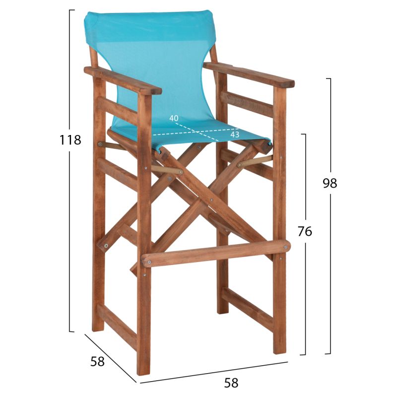 ДИРЕКТОРСКИ БАР СТОЛ ОТ ОРЕХ С НЕБЕСНОСИН ТЕКСТИЛЕН HM10374.08 58x58x118Hcm.