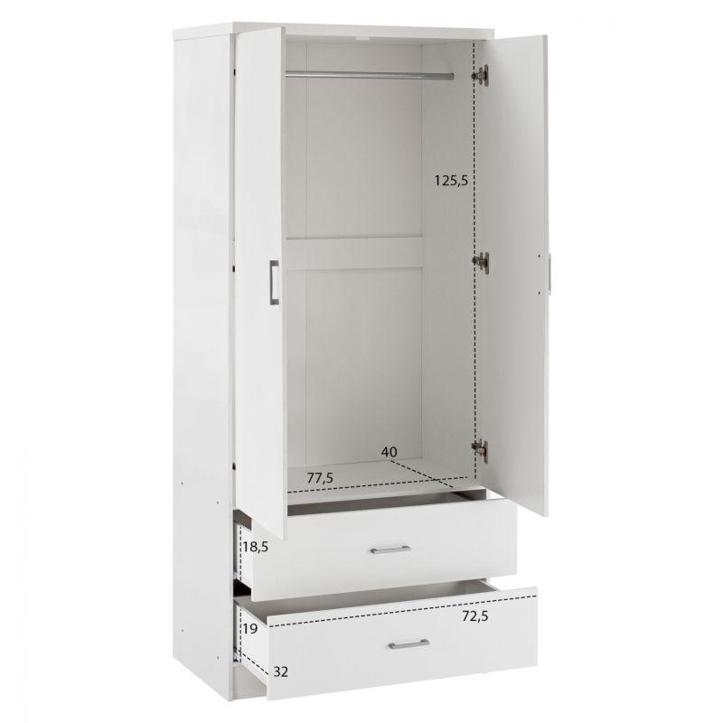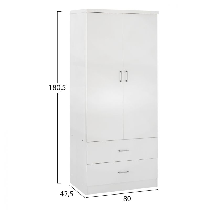 ГАРДЕРОБ 2 ВРАТИ С 2 ЧЕКМЕДЖЕТА HM338.05 БЯЛ 80Χ42,5Χ180,5Υ см.