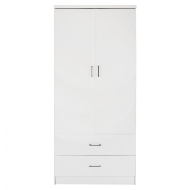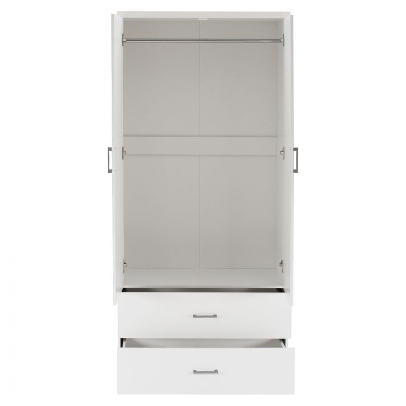Меламинов гардероб с 2 врати и 2 чекмеджета в бял цвят.
