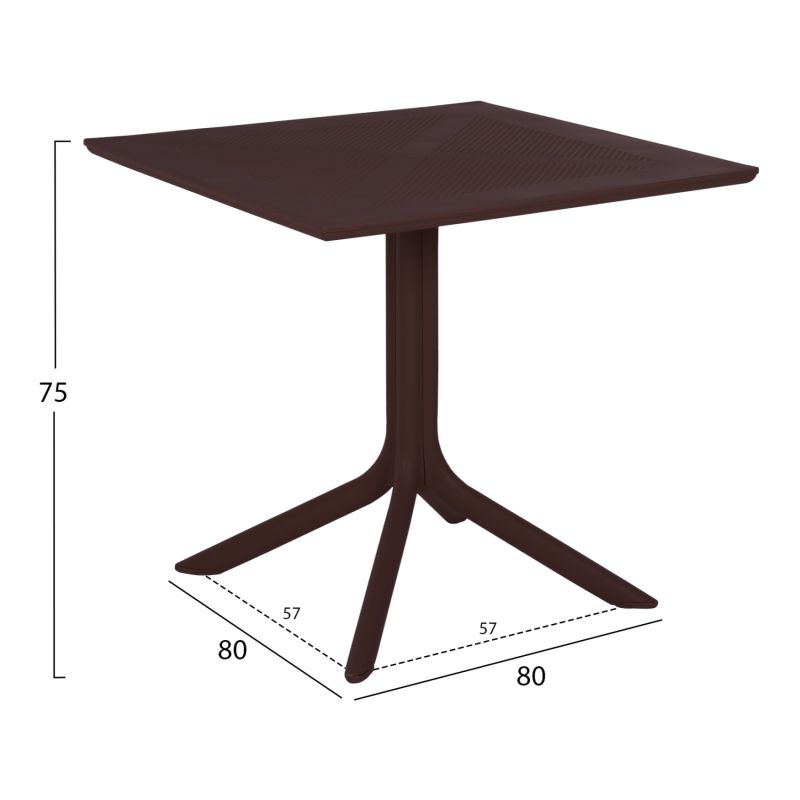ВЪНШНА ПОЛИПРОПИЛЕНОВА КВАДРАТНА МАСА LUNAR HM5930.13 КАФЯВА 80x80x75Hcm.