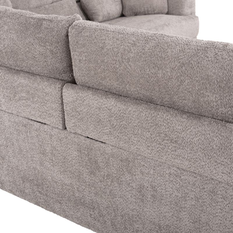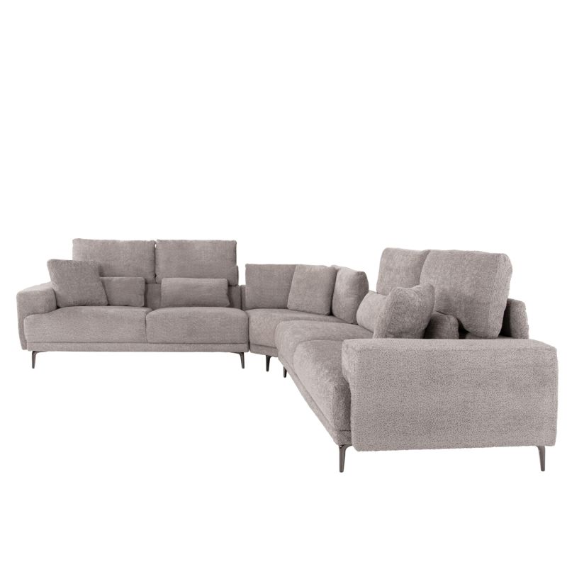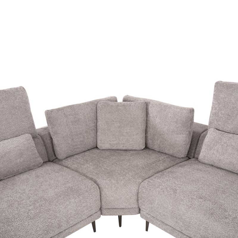 SYMMET е чудесен голям ъглов диван, състоящ се от 3 бр. Двете еднакви и еднакви симетрични страни и свързващ ги ъгъл с вертикални панелни закачалки. Подплатата е изработена от качествена текстурирана материя в цвят LIGHT GREY, а краката са високи и метални в цвят гланц ANRTRACITE. По отношение на дизайна, диванът е с широки и удобни подлакътници, а облегалката от двете страни е къса, но има сгъваеми части, които служат като допълнителна опора за облегалните възглавници. Разполага с 4 големи облегални възглавници и 9 по-малки, което повишава комфорта, който предлага. Седалката има пълнежи от пяна със средна твърдост, комбинирани с покет пружини, които също предлагат несравним комфорт.