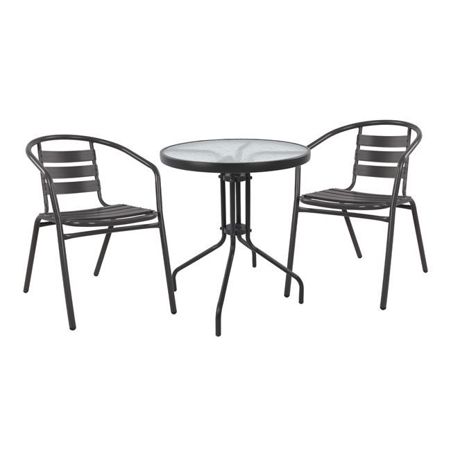 Начало ЕКСТЕРИОР Комплекти за хранене и кафе Комплект 3 части с маса Lima закръглена 60x70см и фотьойли Laur сив цвят HM10467