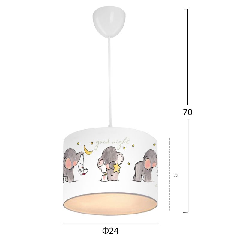 ΠΑΙΔΙΚΟ ΦΩΤΙΣΤΙΚΟ ΟΡΟΦΗΣ ΥΦΑΣΜΑΤΙΝΟ HM7575.01 ΛΕΥΚΟ ΜΕ ΣΧΕΔΙΟ ELEPHANT Φ24x70Y ек .
