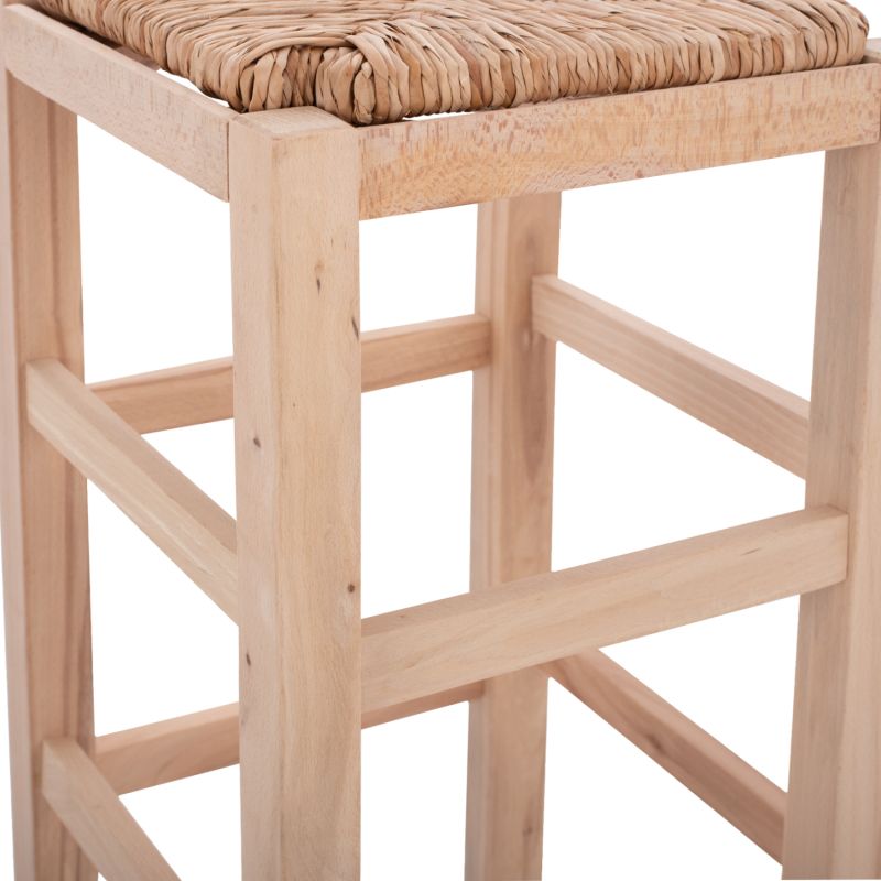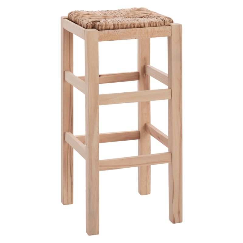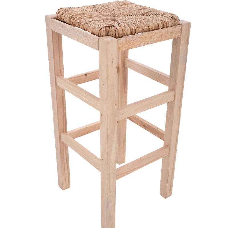 Традиционна табуретка без облегалка от масивно буково дърво със слама.