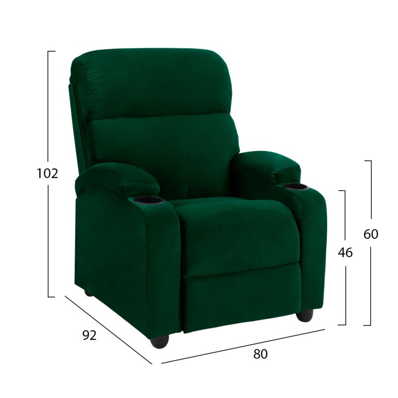 HM0122.13 Фотьойл кипарис зелено кадифе релакс, механизъм за облягане 80x92x102см