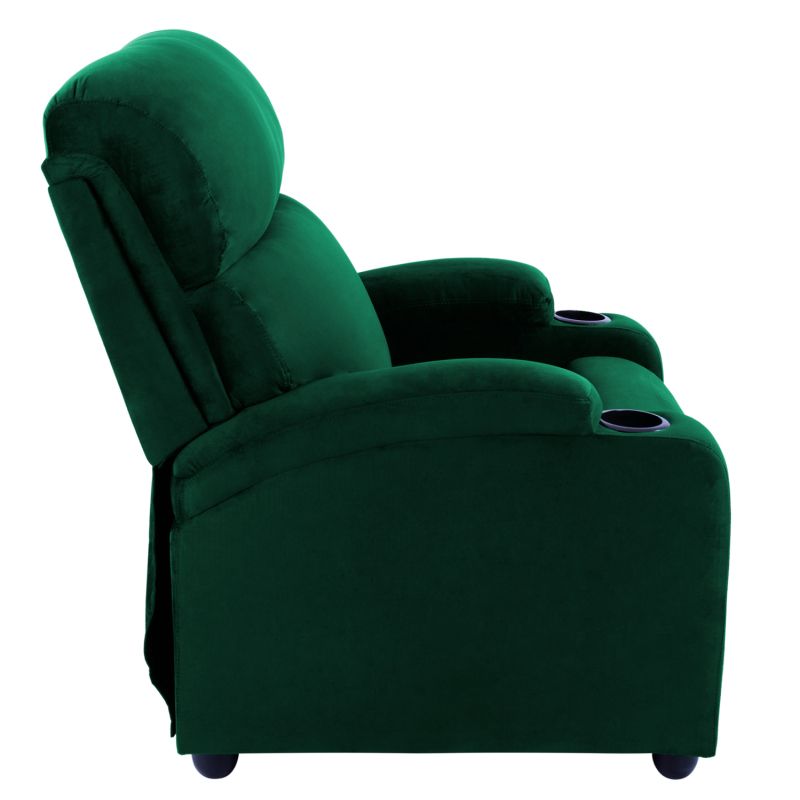 ΗΜ0122.13 с кадифена тапицерия CYPRESS GREEN е кресло, което е мечтата на много хора. Визуално изпълва сетивата на всеки с богатите си размери и удобни възглавнички. Облегалката е висока, а седалката е дълбока, а ръцете ви приканват да разтворите ръце върху богатите им възглавници. В допълнение, отгоре на двете рамена има вградени поставки за чаши, така че не е нужно да се притеснявате къде да поставите кафето или напитката си. А когато се приберете от работа и искате да се отпуснете пред телевизора, или да почетете вестника си, или любимата си книга пред прозореца, тогава релакс механизмът сваля гърба и в комбинация със сгъваемата поставка за крачета ще ви предложи уникално моменти на релаксация.