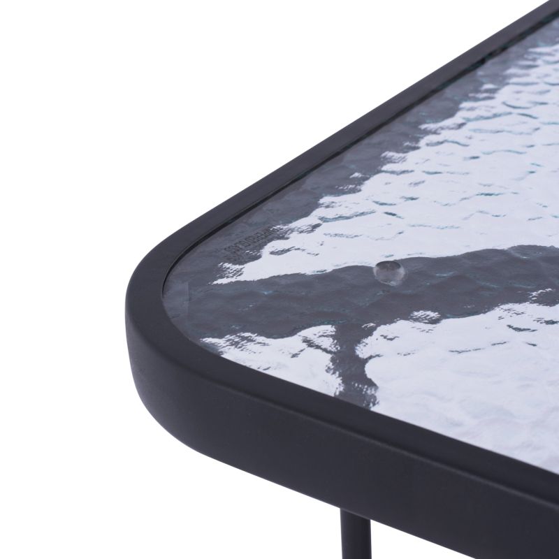 Външната маса ADAM има ТЪМНО СИВА метална рамка и плот от матирано (непрозрачно) стъкло! Това е много популярна маса, която не липсва на почти всеки балкон или градина. ADAM е правоъгълен със заоблени ъгли, докато стъклото на масата е подсилено (закалено).