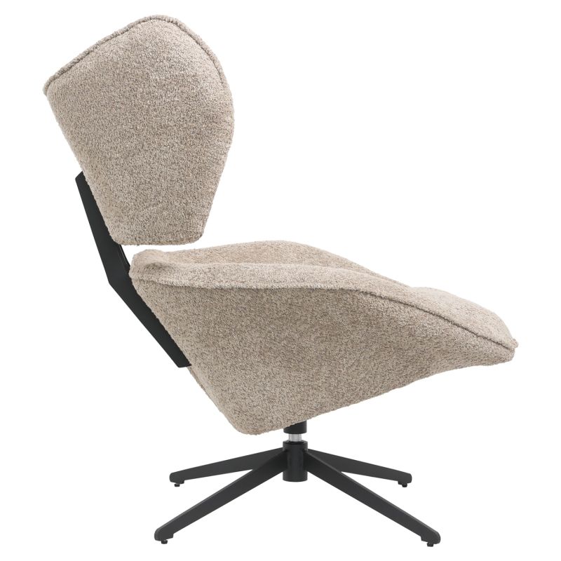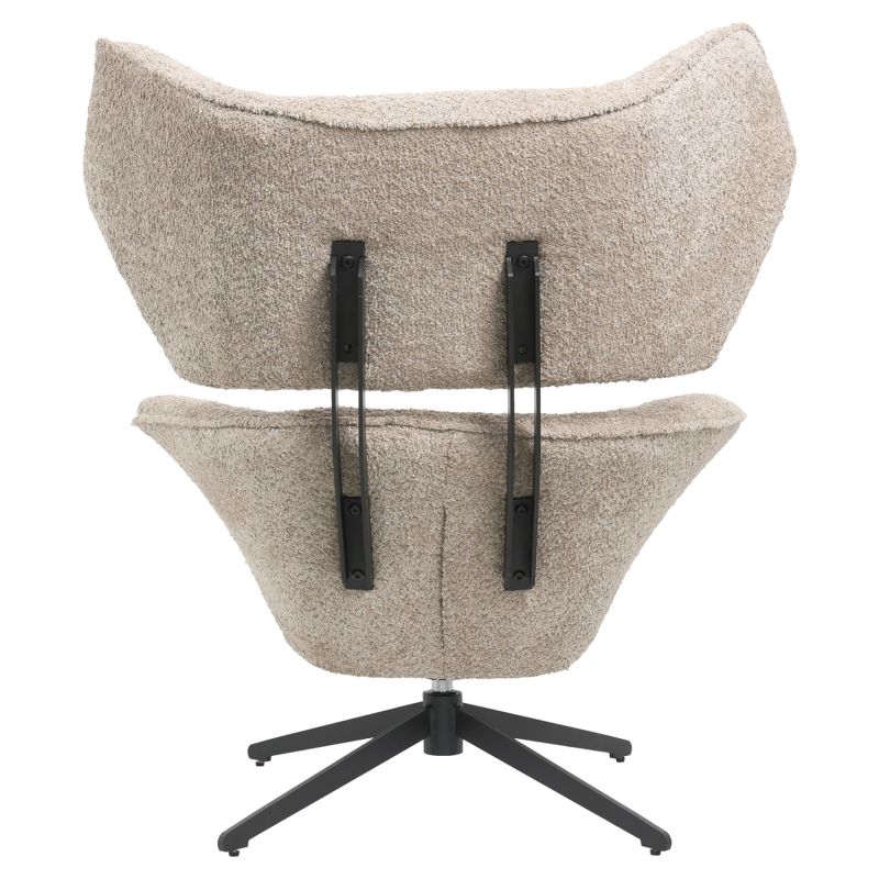 Представяме ви въртящото се кресло BRYLL в БЕЖОВ цвят, което е едно от новите попълнения в нашата гама. Той лежи върху черна метална четиризъба основа, върху която е монтиран въртящият се щифт. Тапицерията на фотьойла е изработена от висококачествена дамаска от букле, а седалката е удобна, отговаряща на характера на креслото, което е модерно съчетаващо изискан дизайн и комфорт. Поставете го до камината, прозореца или дори в спалнята си и се оставете да бъдете прегърнати от него.