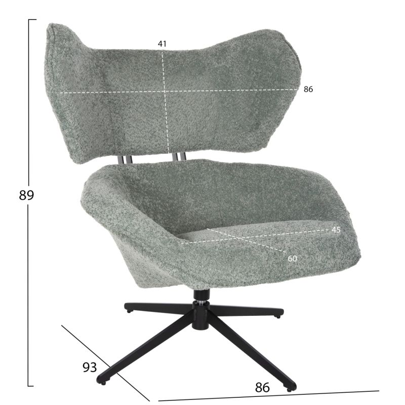 Представяме ви въртящото се кресло BRYLL в цвят PISTACHIO GREEN, което е едно от новите попълнения в нашата гама. Той лежи върху черна метална четиризъба основа, върху която е монтиран въртящият се щифт. Тапицерията на фотьойла е изработена от висококачествена дамаска от букле, а седалката е удобна, отговаряща на характера на креслото, което е модерно съчетаващо изискан дизайн и комфорт. Поставете го до камината, прозореца или дори в спалнята си и се оставете да бъдете прегърнати от него.