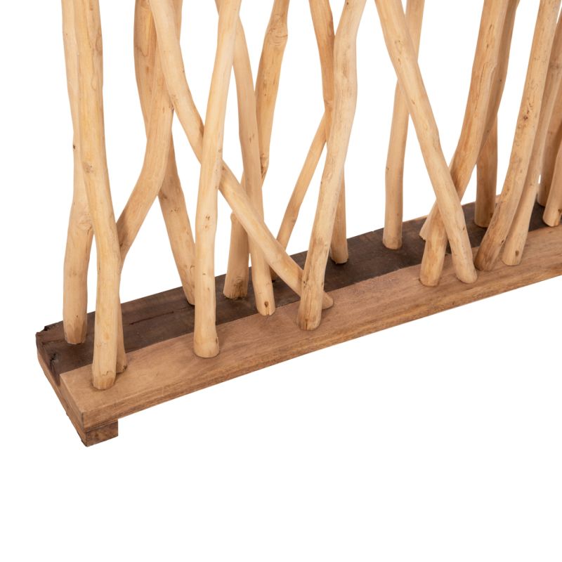 Преградата е изработена от масивни ТИКОВИ клони. Когато говорим за масивно дърво, имаме предвид дърво, направено изцяло от ствола на дърво. Масивната дървесина е най-скъпият избор по отношение на дървесината, но се откроява със своята вечна естетика.