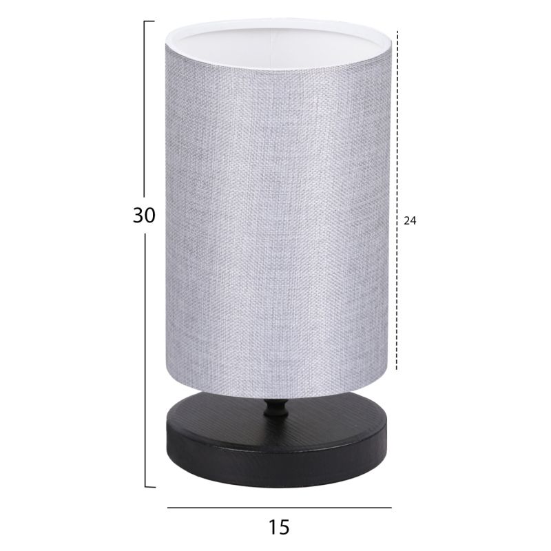 Декоративна настолна лампа с дървена кръгла основа в черен цвят и цилиндричен абажур в светло сив цвят. Светлината на лампата се разпръсква сладко в пространството и създава топла атмосфера. Тези лампи не са идеални за четене и това винаги трябва да се има предвид, когато обмисляте закупуването на такава. Те са чисто декоративни и съчетаването им с околното пространство трябва да е хармонично. Тази лампа е семпла, елегантна и удобна като размери, предоставяща безброй възможности за "завързване" с останалата част от вашата декорация. Това е едно малко произведение на изкуството.