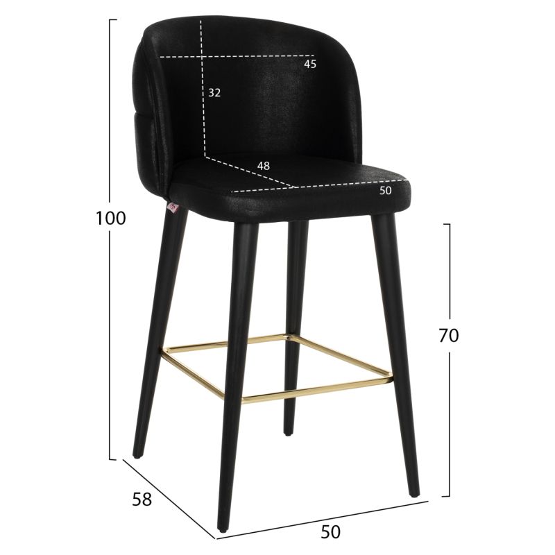 БАР СТОЛ MARCELLO PROFESSIONAL HM9280.14 ТИП НАБУК ДЪРВО ЧЕРЕН 50x58x100Hcm.