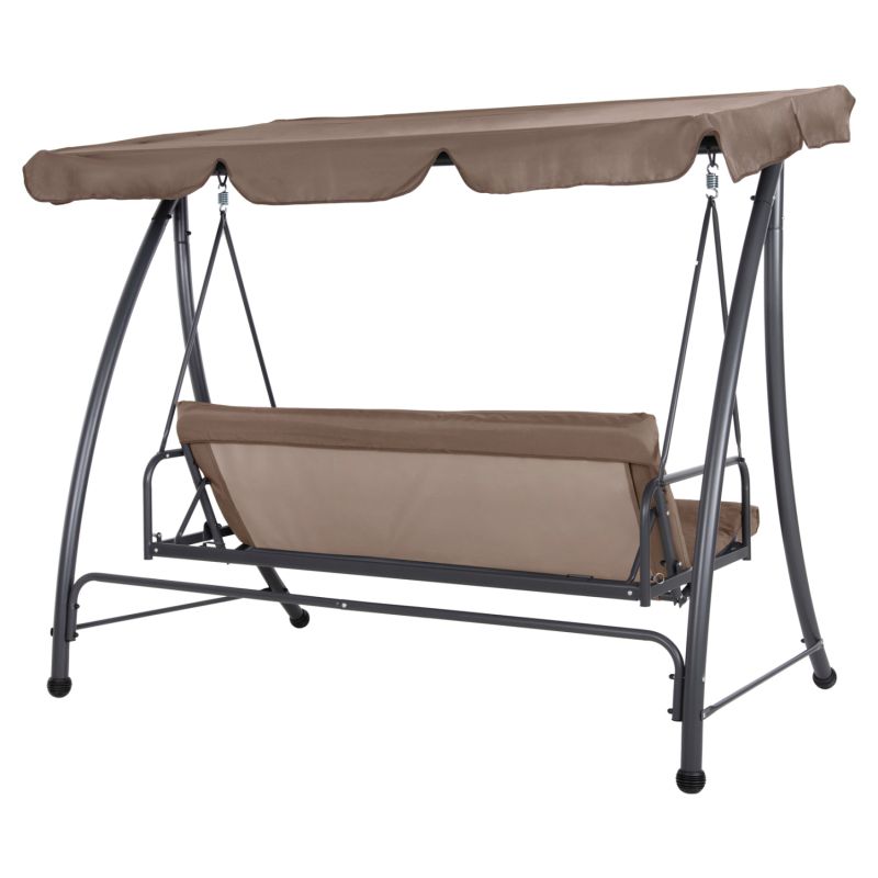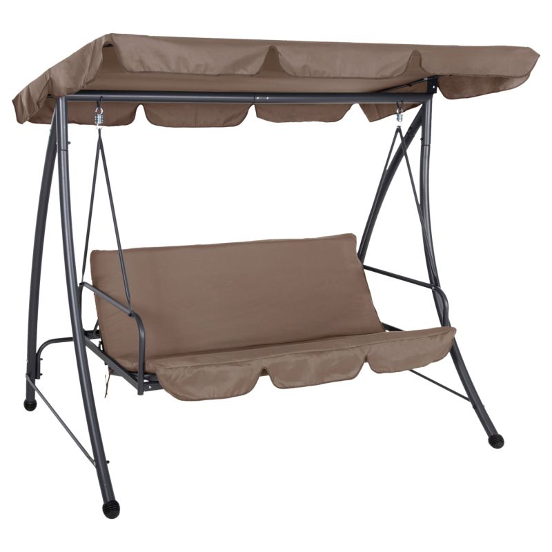 3-МЕСТНО ЛЕГЛО ЗА ВЕРАНДА LIKID HM5980.02 МЕТАЛНА КОНСТРУКЦИЯ В СИВО-ПЛАТА В СВЕТЛО КАФЯВО 200x120x164Hcm.