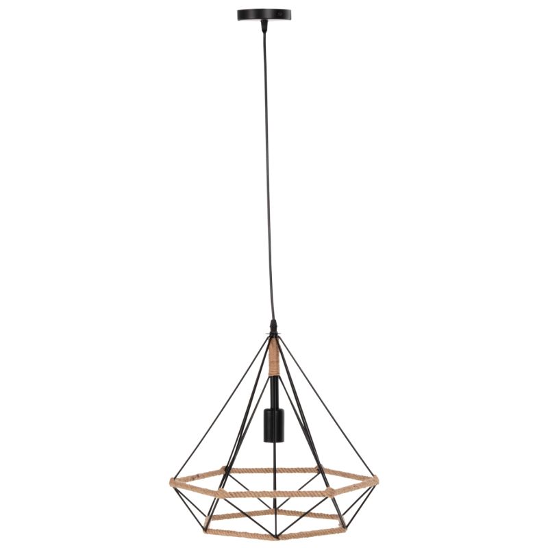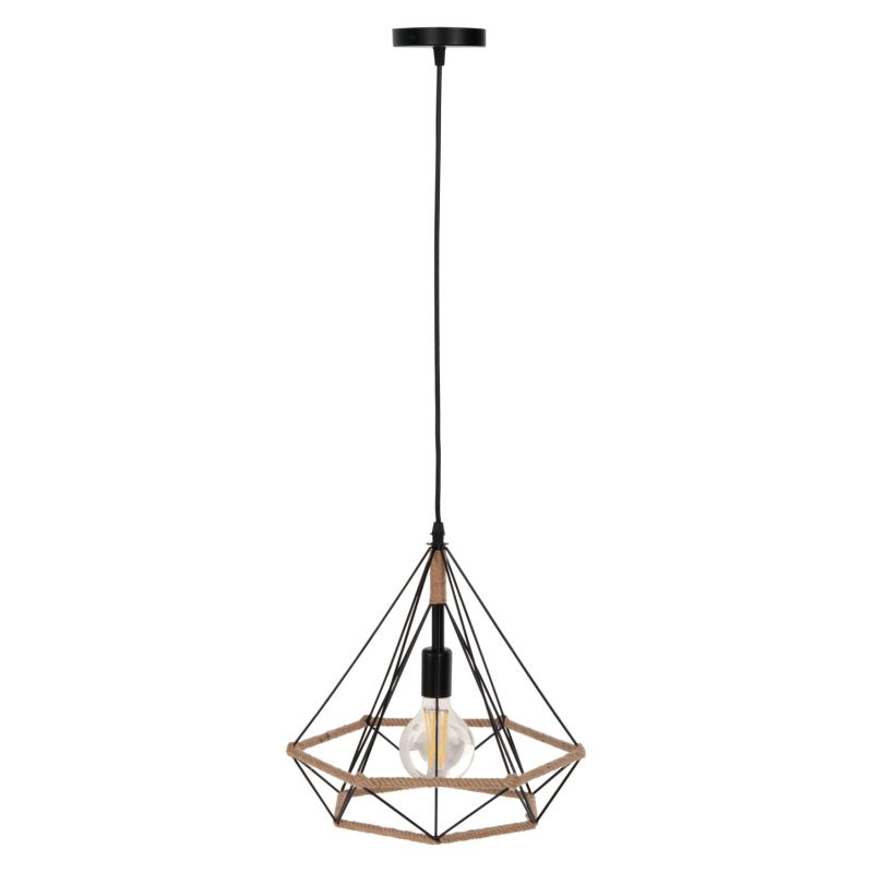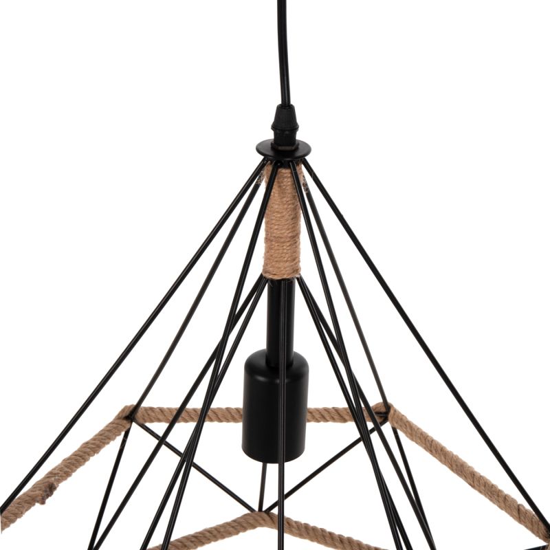 Оставете светлината да се разпространи в пространството с оригинален и елегантен пендел, завършващ вашата декорация. Диамантената форма с ЧЕРНИ метални пръти и въже е олицетворение на модерния дизайн.