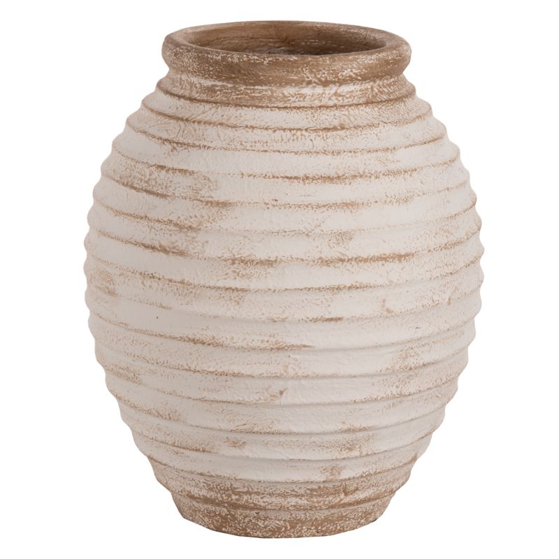 ДЕКОРАТИВНА ПОДОВА ВАЗА PYDNA HM7932 ТЕРАКОТА В АНТИЧЕН БЯЛО-БЕЖОВ ЦВЯТ Φ28x35Hcm.
