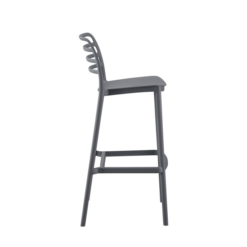 Табуретката SNOD е семпъл бар стол, който има всичко, което бихте искали от подобна мебел. Той е качествен и елегантен на външен вид и определено привлича вниманието. Цялата табуретка е изработена от едно парче полипропилен в СИВ цвят със сравнително ниска облегалка с хоризонтални щанги. Също така, краката са съединени от много практична поставка за крака. Цялата конструкция е лека и удобна и ще се превърне в любимата седалка във всяко пространство, благодарение на своята практичност, която е подсилена от факта, че табуретката може да се подрежда една върху друга.