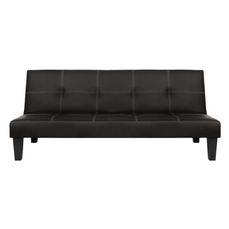 Разтегателен диван в модерен стил с детайли от кафява PU кожа. Маскиран като диван, той има просторна всекидневна, като същевременно предлага функционалните характеристики на футон.