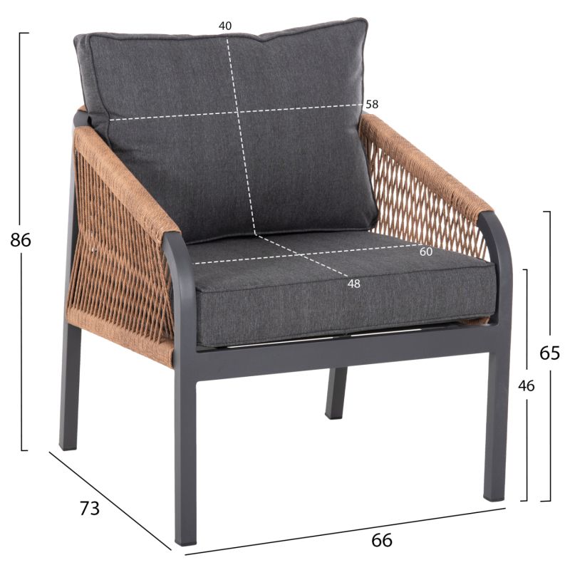ВЪНШЕН КОМПЛЕКТ 4БР MAERLY HM6056.03 АНТРАЦИТ АЛУМИНИЕВО-PE УСУКВАЩО ВЪЖЕ-АНТРАЦИТ ВЪЗГЛАВНИЦИ