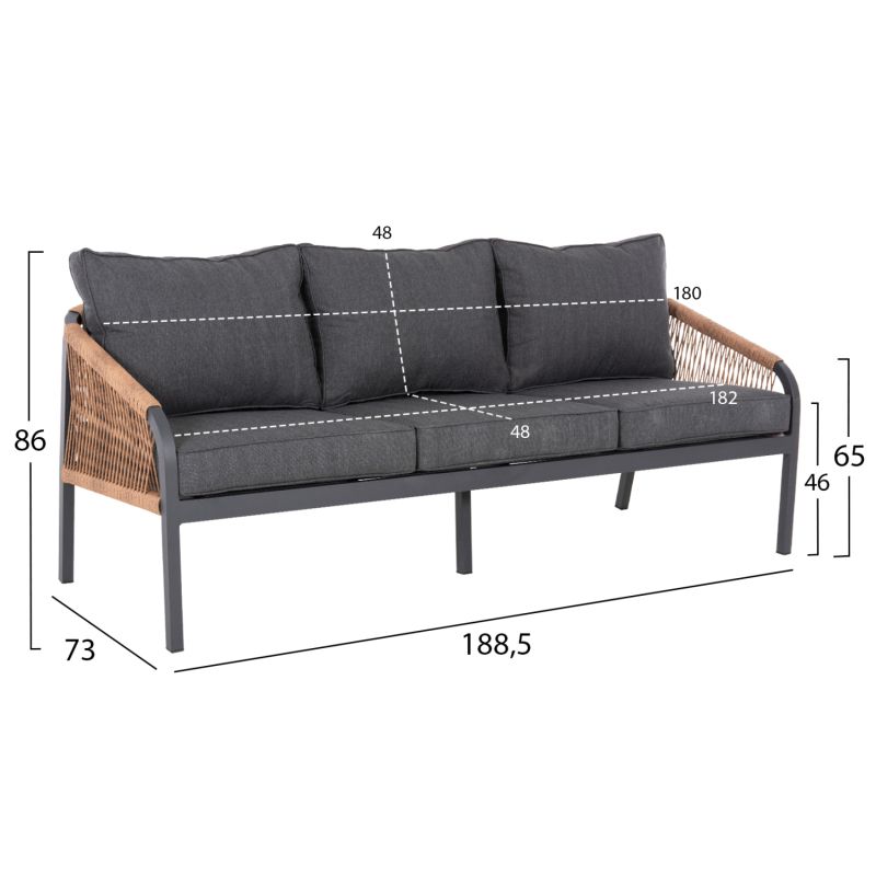 Размери на дивана: 188,5x73x86H см.--Височина на седалката: 46 см.--Височина подлакътници: 65 см.