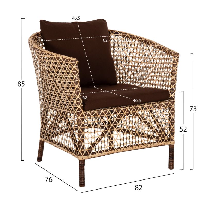 КРЕСЛО ВЪНШНО SILMAR HM6111 КАФЯВО-ЕСТЕСТВЕН РАТАН-ВЪЗГЛАВНИЦИ КАФЯВО 82x76x85Hсм.