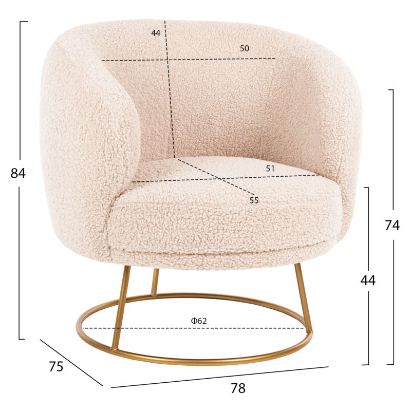 КРЕСЛО ARIEN HM8403.20 МАТЕРИАЛ ОТ БУКЛЕ В МЕТАЛНА ОСНОВА ЕКРЮ-ЗЛАТНО 78x75x84Hcm.