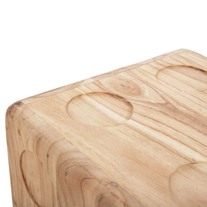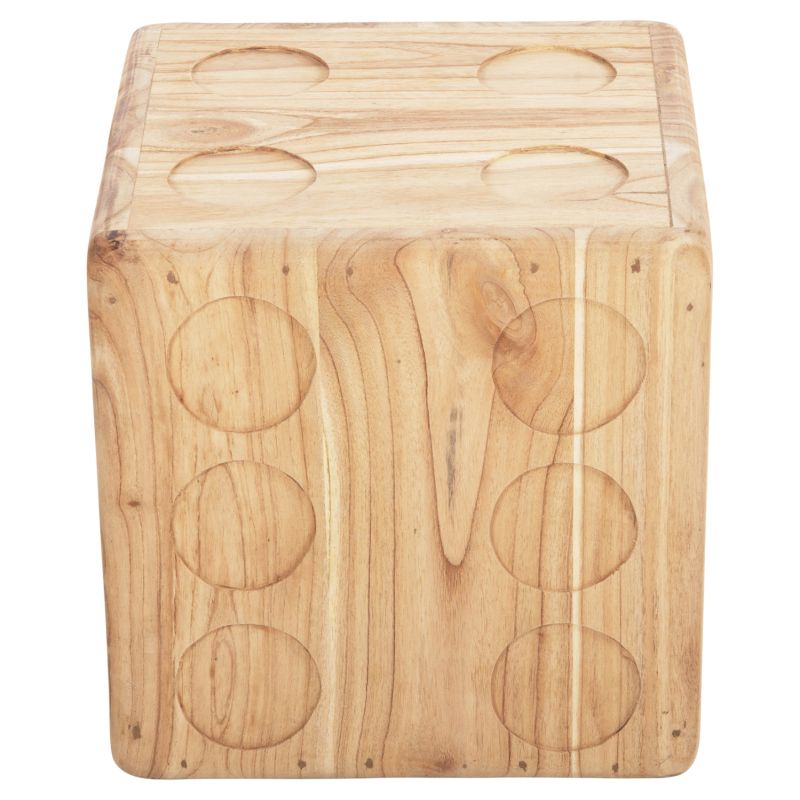 Табуретката ZARI е определението за модерен стил. Представлява истинско зарче с размерите на табуретка с небоядисани точки за зарове, изработено от тиково дърво в ЕСТЕСТВЕНИЯ цвят. Идеален е за дома, но също така и за хотели, Airbnb, заведения за хранене като декоративен елемент и др.
