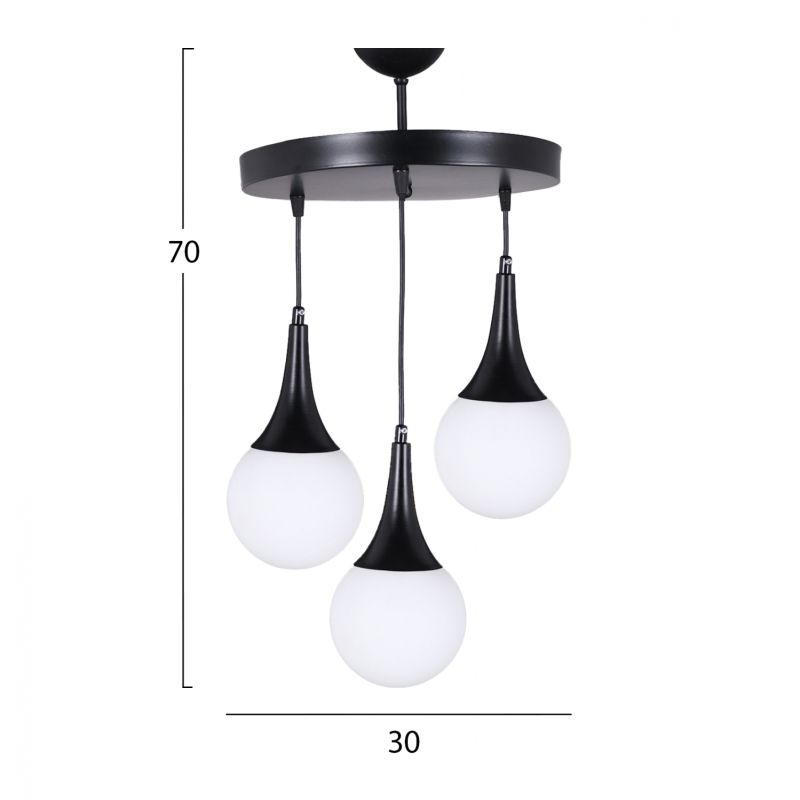 Φωτιστικό orοφής,3φωτο, σε μαύρη aπόχρωση, λευκούς γλόμπους.