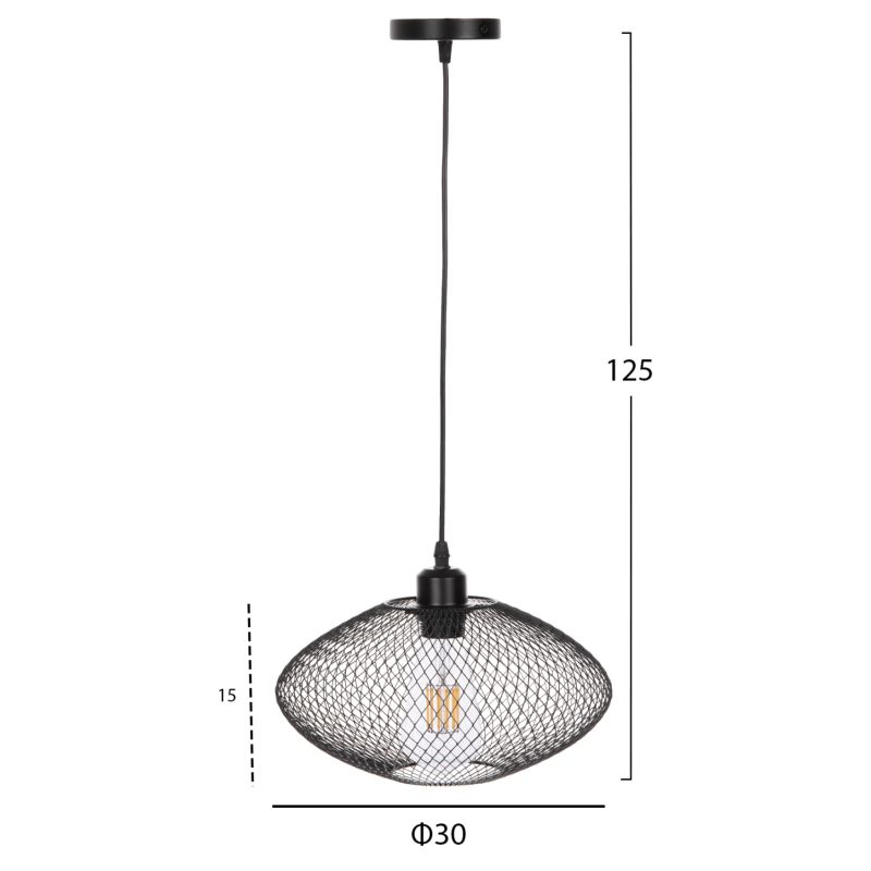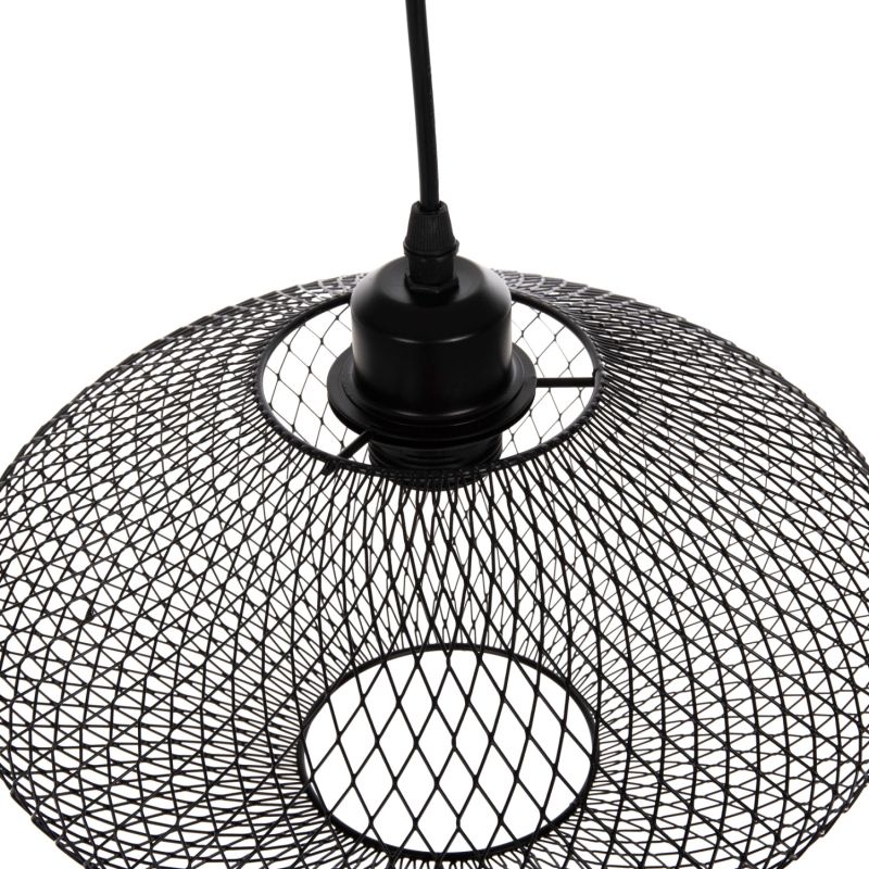 Открийте нашата нова висяща таванна лампа и завършете декорацията си. Това е лампа с ЧЕРНА метална мрежеста капачка в овална форма и представлява най-новата тенденция при плафониери.