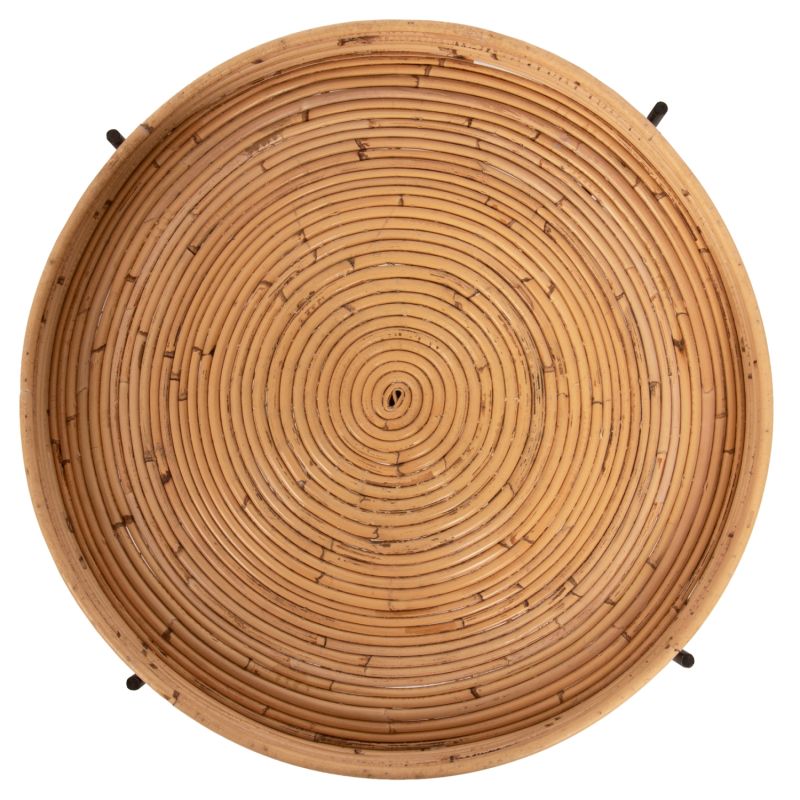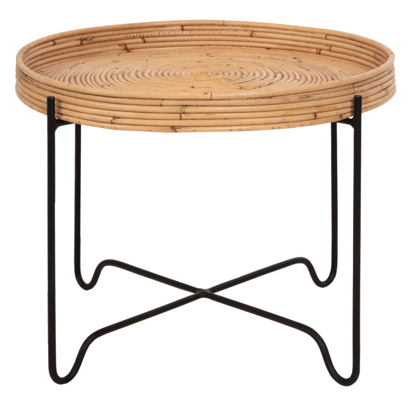 КРЪГЛА ПОМОЩНА МАСА FLY HM7907 РАТАН В ЕСТЕСТВЕН ЦВЯТ-ЧЕРНА МЕТАЛНА ОСНОВА Φ50x40Hсм.